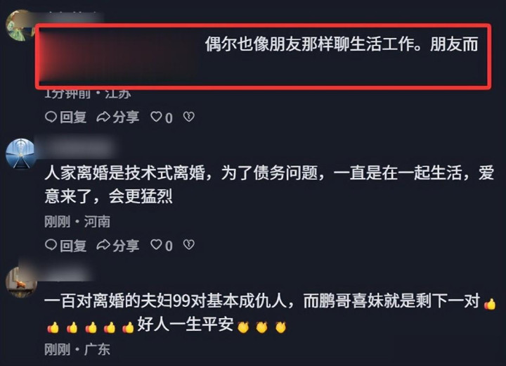 网友看了她的回复,有网友留言说:“这种情景太可了,不硬凹恩爱东谈主设,也不纠结昔日,真的又理解”。