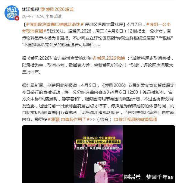 据了解,节目组原定4月7日直播小考,却在开播前45分钟临时改为次日录播,意义为保险艺东说念主休息。但爆料称真确原因是整宿彩排致艺东说念主躯壳透支,且此前初舞台已出现耳返故障、票数十分等问题。不雅众质疑此举消散诞妄或操控领域,精深付费会员条件退费。