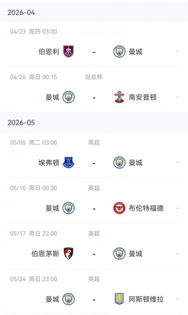 而比拟之下凤凰彩票welcome,曼城尽管有着足总杯半决赛,但在4月下旬到5月中旬的比赛任务相对松驰,几个敌手硬实力齐不算强。但曼城将在临了三轮连战布伦特福德、伯恩茅斯和阿斯顿维拉。一朝打进足总杯决赛,由于后者依然服气将在5月16日举行,这也意味着曼城的倒数第二轮对阵伯恩茅斯的英超将会赞成比赛日历。凭证以往西宾,时常齐会放在此前或而后的周中进行,这也意味着曼城将在临了的冲刺阶段迎来一周三赛。
